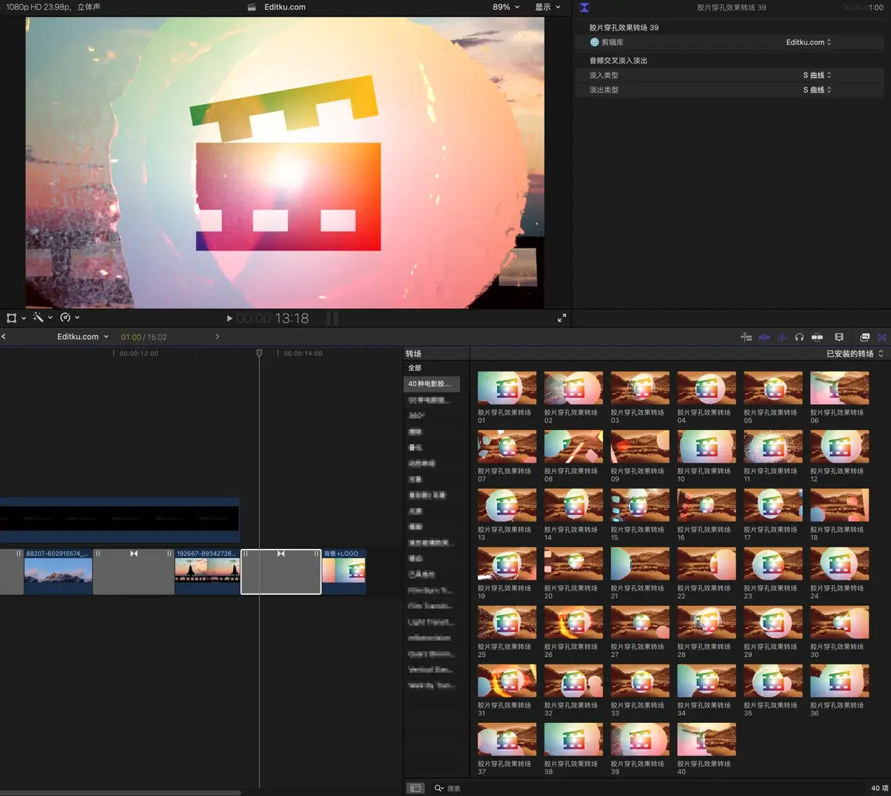 40种电影胶片穿孔效果视频转场动画-FCPX插件