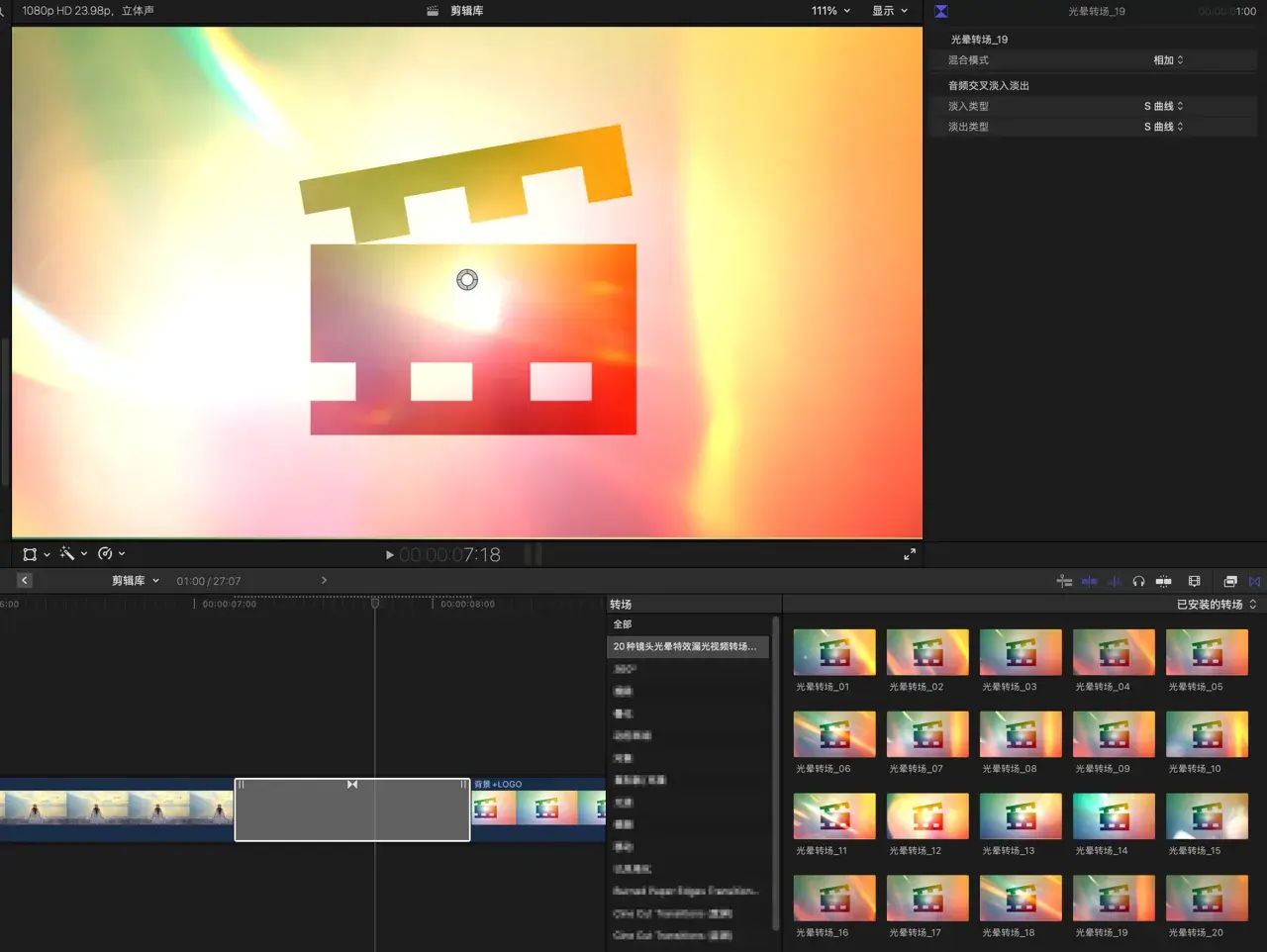 24种镜头光晕光效动画转场过渡-中文FCPX插件